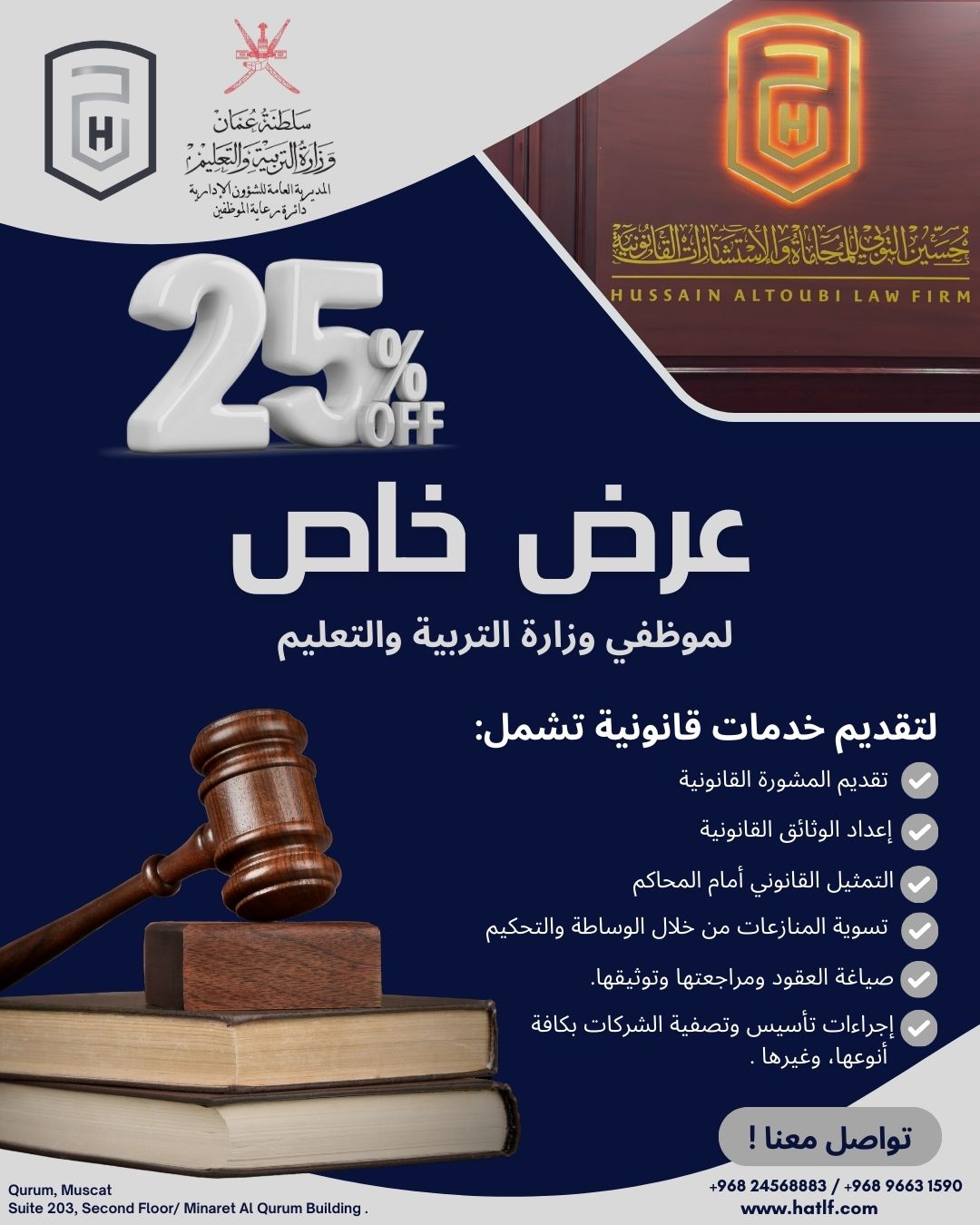 عرض مكتب حسين التوبي للمحاماة والإستشارات القانونية