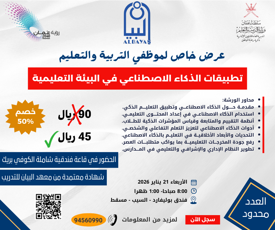 محتويات هذا الموقع مرخصة بموجب الرخصة الحكومية المفتوحة - عمان وزارة التعليم - 2026