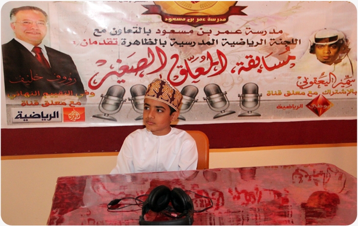انطلقت صباح اليوم الأربعاء مسابقة المعلق الصغير لمدارس تعليمية الظاهرة و التي نظمتها المديرية العامة للتربية و التعليم بمحافظة الظاهرة ممثلة في لجنة الرياضة المدرسية و بحضور المعلق العماني الواعد سمير اليعقوبي من قناة أبوظبي الرياضية و شهدت المسابقة مشاركة واسعة من طلاب مدارس الظاهرة تجاوز عددهم 50 ... المزيد