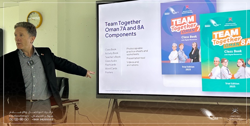 تنفذ المديرية العامة لتطوير المناهج ممثلةً بقسم مناهج اللغات الأجنبية بدائرة مناهج العلوم الإنسانية، البرنامج التدريبي الخاص بمناهج الصفين السابع والثامن من سلسلة اللغة الإنجليزية "Team Together Oman". ويستهدف البرنامج مدربي اللغة الإنجليزية بديوان عام الوزارة والمديريات التعليمية في مختلف المحافظات. يهدف البرنامج ... المزيد