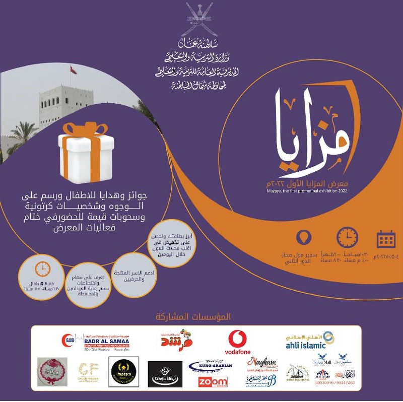 غداً افتتاح معرض مزايا الأول بشمال الباطنة يفتتح غداً بمركز سفير مول صحار معرض مزايا الأول ٢٠٢٢م بشمال الباطنة والذي ينظمه قسم رعاية الموظفين بتعليمية شمال الباطنة برعاية الفاضل حسن بن سليمان الجابري مدير إدارة التراث والسياحة بمحافظة شمال الباطنة. يستهدف المعرض جميع الموظفين والهيئة الإدارية والتدريسية بالمحافظة ... المزيد