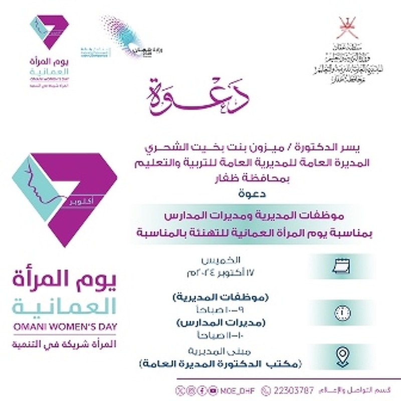 متابعة تطبيق مادة الهوية والمواطنة للصفوف (1-4) في مدارس محافظة ظفار علي العوائد وفهد المرزع عقد بمركز التدريب لقاء مع معلمات مادة الهوية والمواطنة بتعليمية ظفار والذي نفذه المختصين من قسم مناهج المهارات الحياتية كل من د. عادل بن محمد الكندي مدير مساعد مناهج المهارات الحياتية وبدر بن خلفان ... المزيد