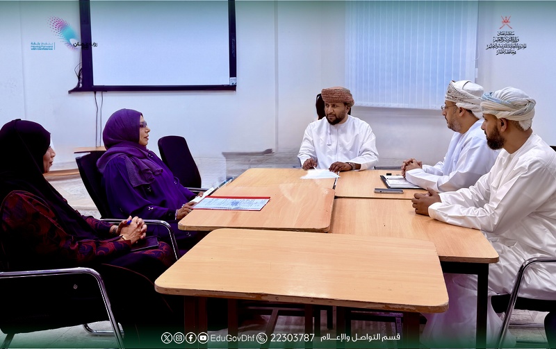 مناقشة تطوير أنظمة المؤهلات الدراسية بتعليمية ظفار تغطية: عاصم باحجاج وسعود الحضري استقبلت دائرة القياس والتقويم التربوي بتعليمية ظفار اليوم الفريق الزائر من وزارة التربية والتعليم بقاعة الاجتماعات بحضور مدير دائرة القياس والتقويم التربوي الأستاذ محمد الكثيري وعدد من المختصين من الدائرة. تكوّن الفريق الزائر من الفاضل ... المزيد