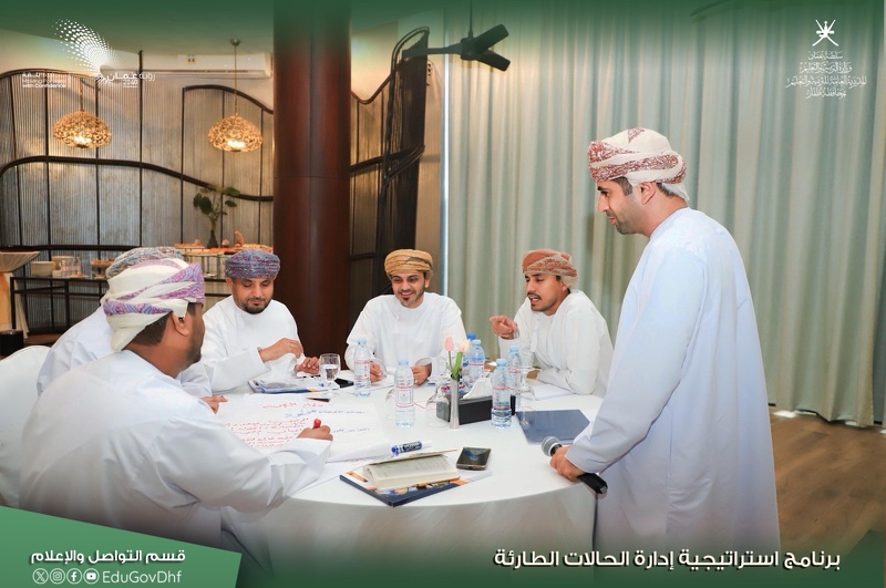 بدأ اليوم بالمديرية العامة للتربية والتعليم بمحافظة ظفار البرنامج التدريبي استراتيجية وزارة التربية والتعليم في إدارة الحالات الطارئة بحضور الدكتور علي بن حميد الجهوري مستشار الوزيرة للمديريات التعليمية والدكتورة ميزون بنت بخيت الشحري المديرة العامة للمديرية العامة للتربية والتعليم بمحافظة ظفار وأعضاء اللجنة الفرعية لإدارة الحالات الطارئة بتعليمية ظفار ويستمر لمدة 3 أيام .