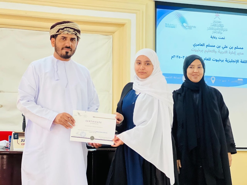 و كذلك مشاركة بعض المعلمين والمعلمات بعض التجارب التربوية. و قام كل من الفاضل مسلم بن علي العامري مدير إدارة التربية والتعليم برخيوت و الفاضلة سهام محمد الذهب مشرفه أول لغه إنجليزيه بتكريم المعلمين ولجنه التحكيم و الطلبة الفائزين في المسابقات الطلابية المنفذة حيث تم تكريم أكثر من ٣٠ طالب و طالبة من مدارس حفوف للتعليم الأساسي( ١-١٠) و ديم للتعليم الأساسي(١-١٢) و أجدروت بنين (5-12) حيرون للتعليم الأساسي(١-١٢) و شعب أصعيب للتعليم الأساسي (١-١٢) احتفالا بتميزهم في مادة اللغة الإنجليزية في المهارات المختلفة.